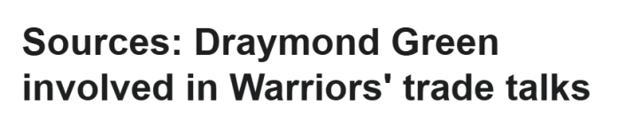 北京时间2月4日,据联盟消息人士向ESPN透露,金州勇士队已在交易截止日前,将格林正式摆上货架,纳入积极的交易谈判中,他为球队效力14个赛季的生涯就此陷入变数。